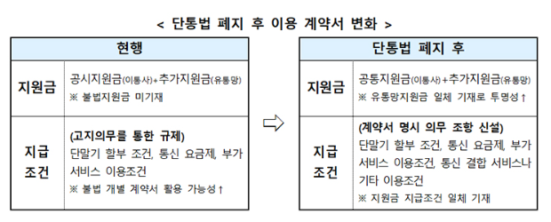 신규가입·번호이동·기기변경 및 요금제별 지원금 차별 제공 규제가 사라짐