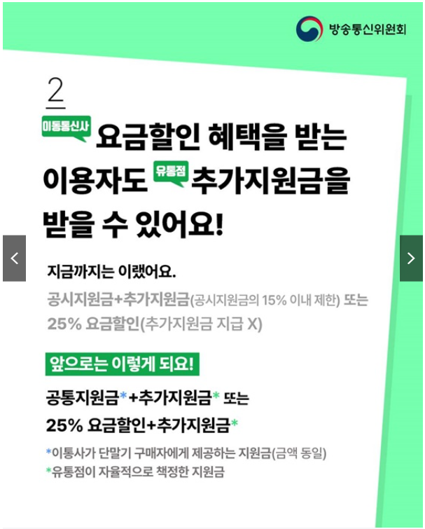 2. 이동통신사 요금할인 혜택을 받는 이용자도 유통점의 추가지원금을 받을 수 있어요!