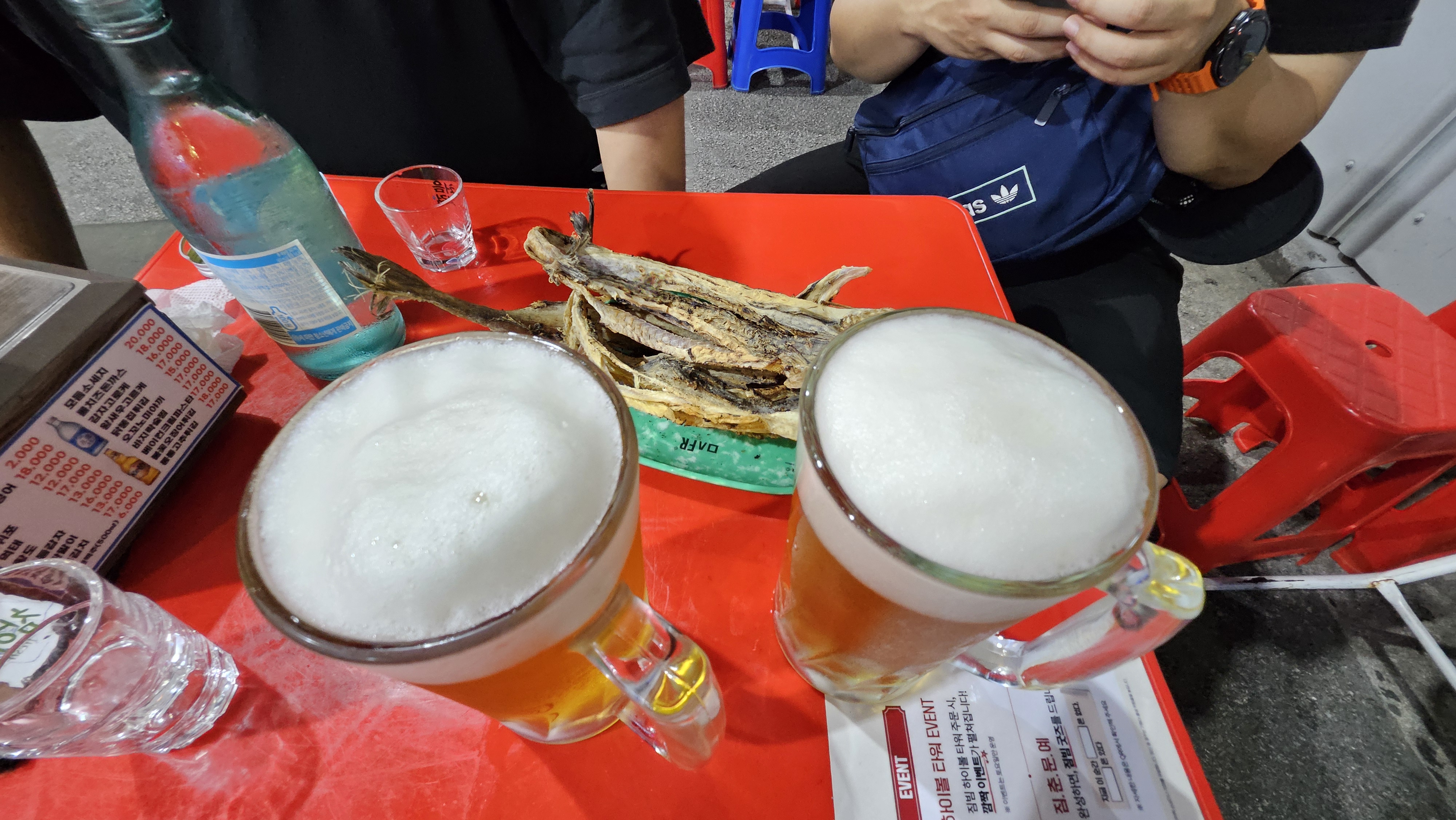저희는 시원한 맥주(저녁에 합류한 친구는 소주)와 노가리 3개를 주문했습니다.